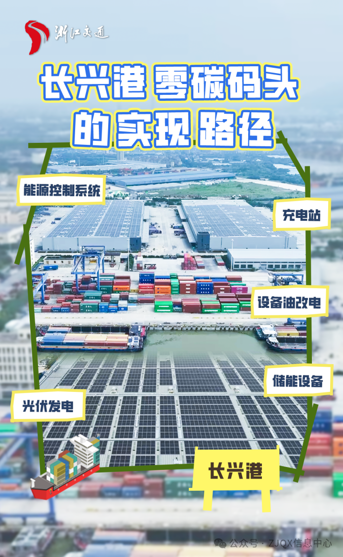 长兴港光伏的意义,远不止于一个码头的自给自足。它是浙江省打造“绿色航运廊道”宏大蓝图中的一块关键拼图,“未来,这里发的绿电,将为停靠在长兴——乍浦等‘零碳示范航线’上的纯电动集装箱船舶充电,实现‘港口绿电供能——船舶零碳航行’的完美闭环。”长兴港相关负责的人介绍说。